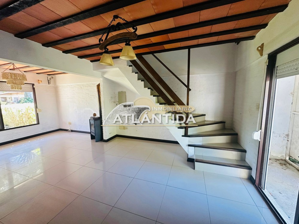 INMOBILIARIA ATLÁNTIDA – ALQUILA ANUAL - Dúplex en alquiler anual, ubicado a tan solo 5 cuadras del centro de Atlántida, con excelente acceso a comercios, servicios y transporte. - Situado en una zona tranquila, con vecinos permanentes durante todo el año. - Una muy buena oportunidad para quienes buscan comodidad y calidad de vida en un entorno agradable. - La propiedad se desarrolla en dos plantas y cuenta con un amplio jardín privado. CARACTERISTICAS PRINCIPALES: - Living-comedor luminoso con estufa de alto rendimiento - Cocina integrada - 2 baños (uno en planta baja y otro en planta alta) - 3 dormitorios en planta alta (con placares empotrados y aire acondicionado) - Cochera - Cuenta con un amplio jardín con parrillero al fondo y cuarto de deposito - Importante: No se aceptan mascotas Precio: $45.000 Garantías aceptadas: Porto, Sura y Mapfre.